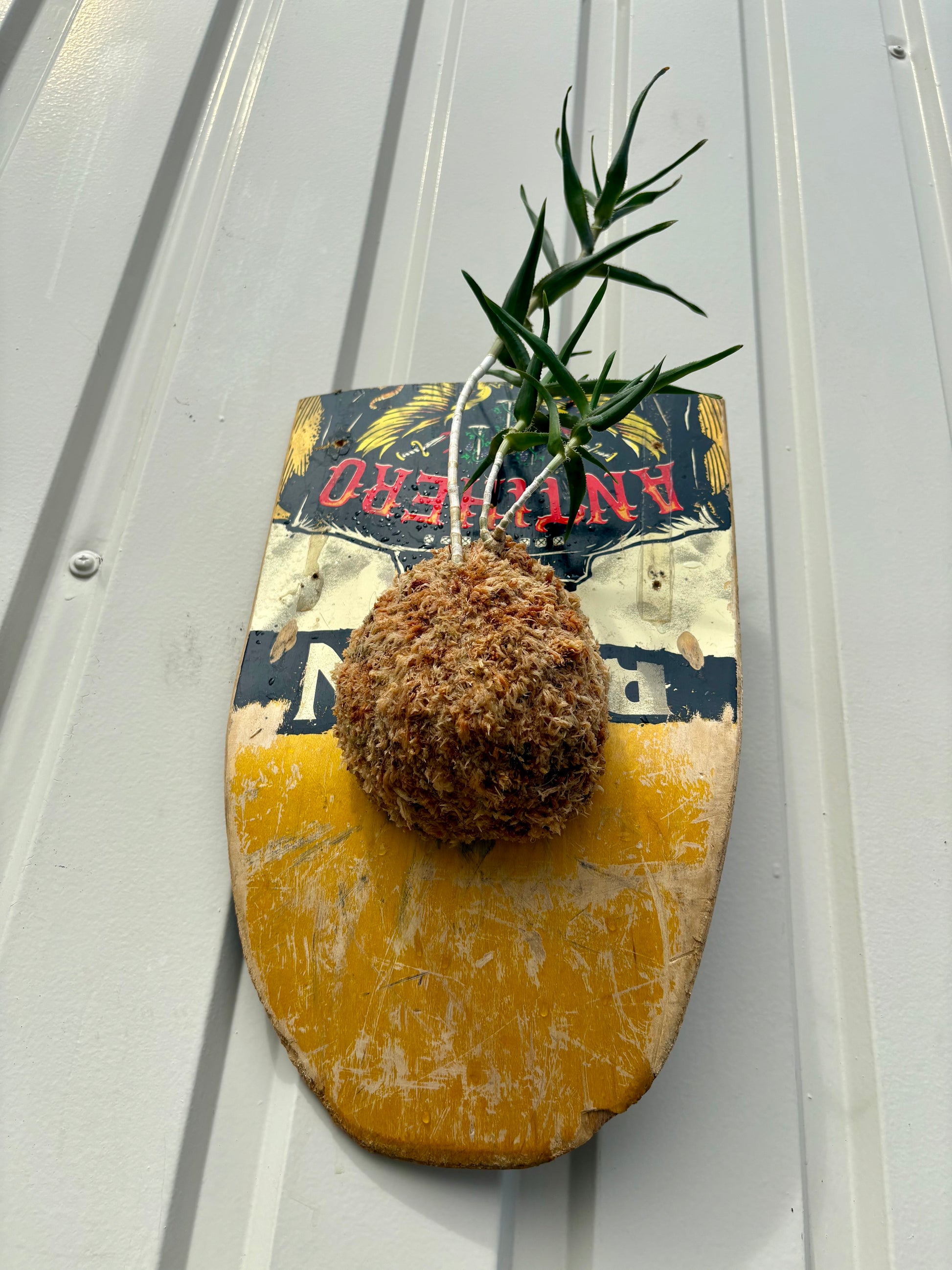また、水苔は貼りついているのではなく、糸で巻いて抑え込んで固定しておりますが、細かい破片が取れる・落ちる場合がございます。