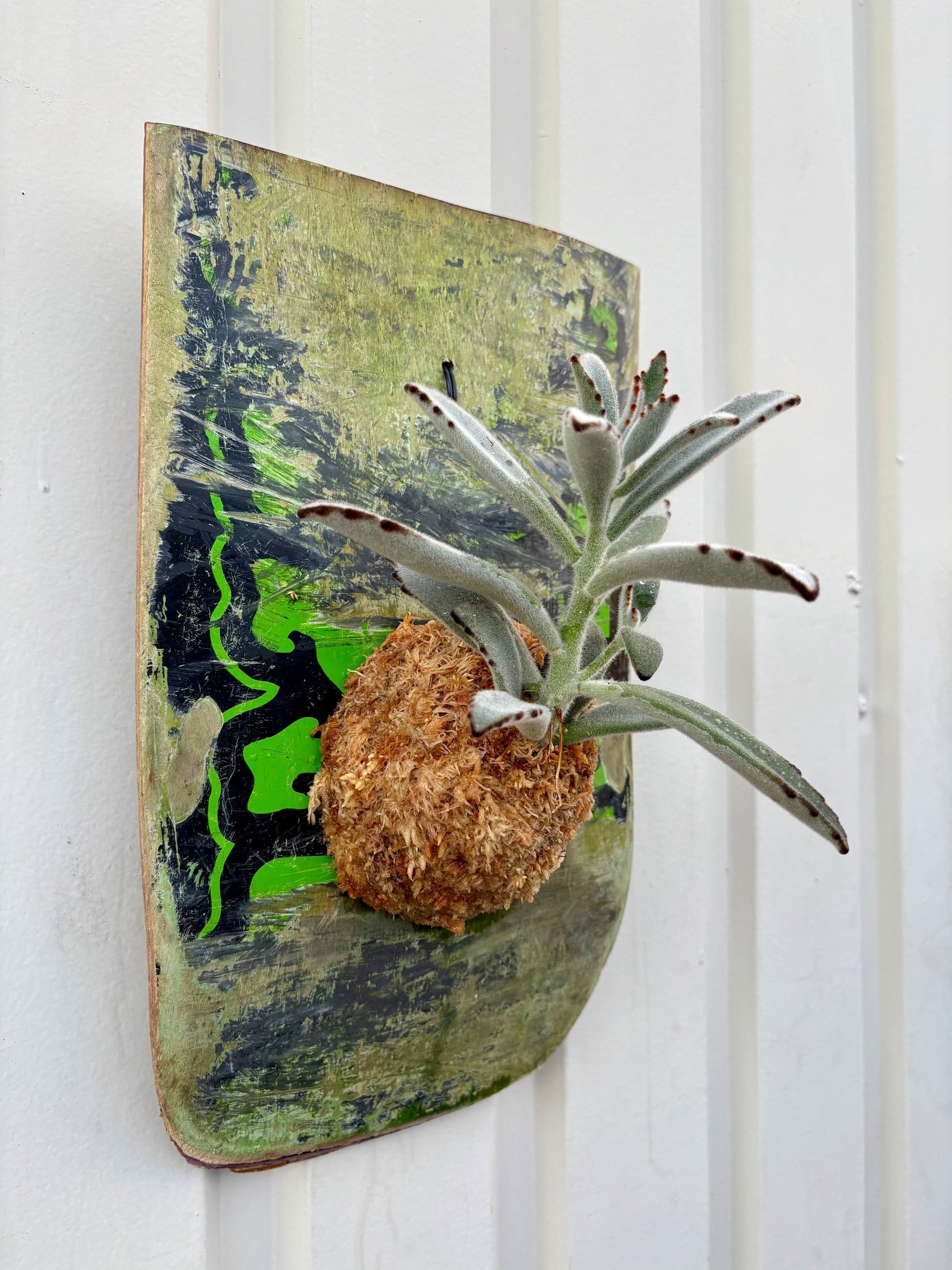 また、水苔は貼りついているのではなく、糸で巻いて抑え込んで固定しておりますが、細かい破片が取れる・落ちる場合がございます。