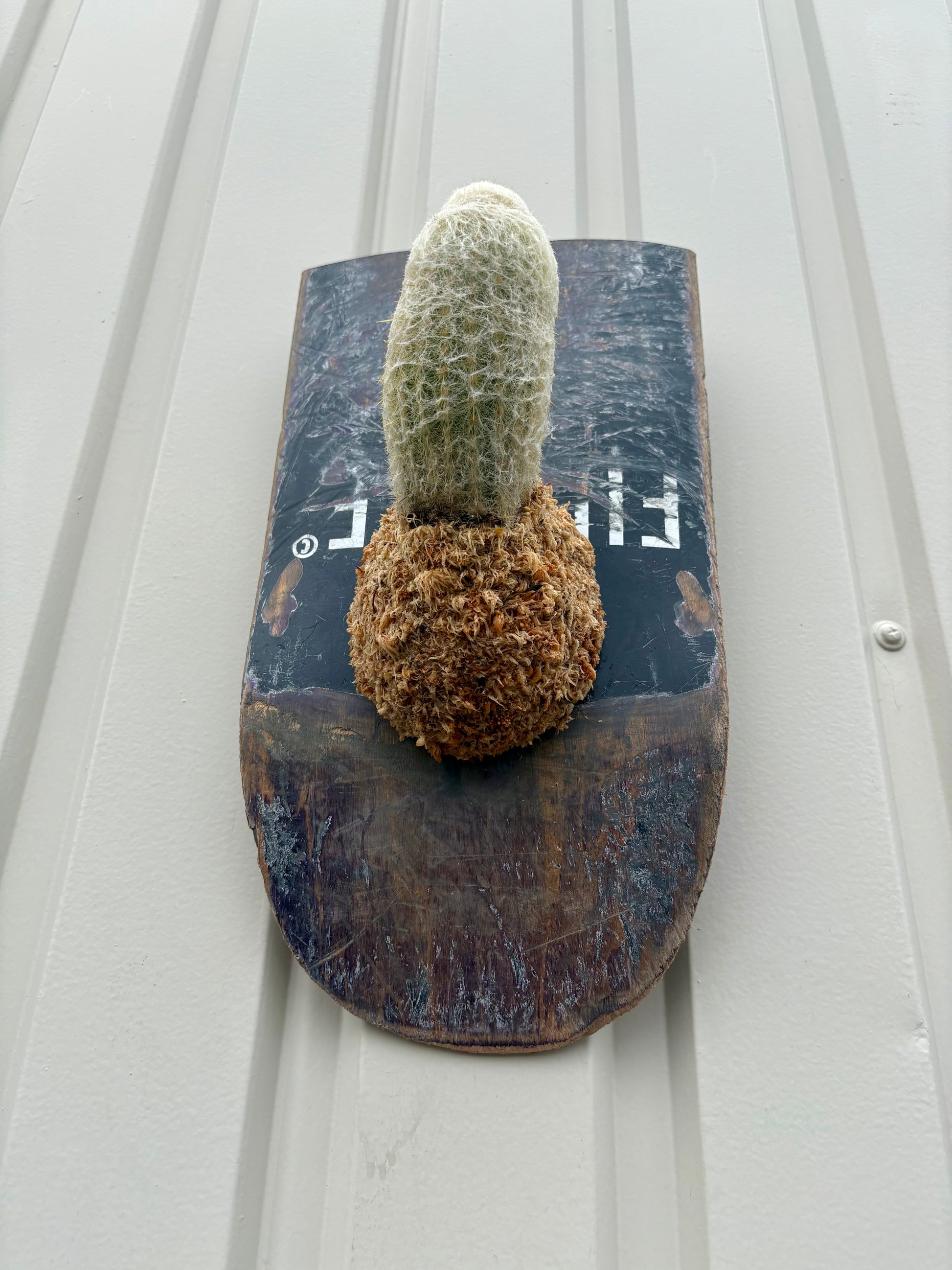 細くて白い綿毛のようなトゲで全体がふわっと覆われていて、まるで雪をかぶったみたいな見た目が特徴。