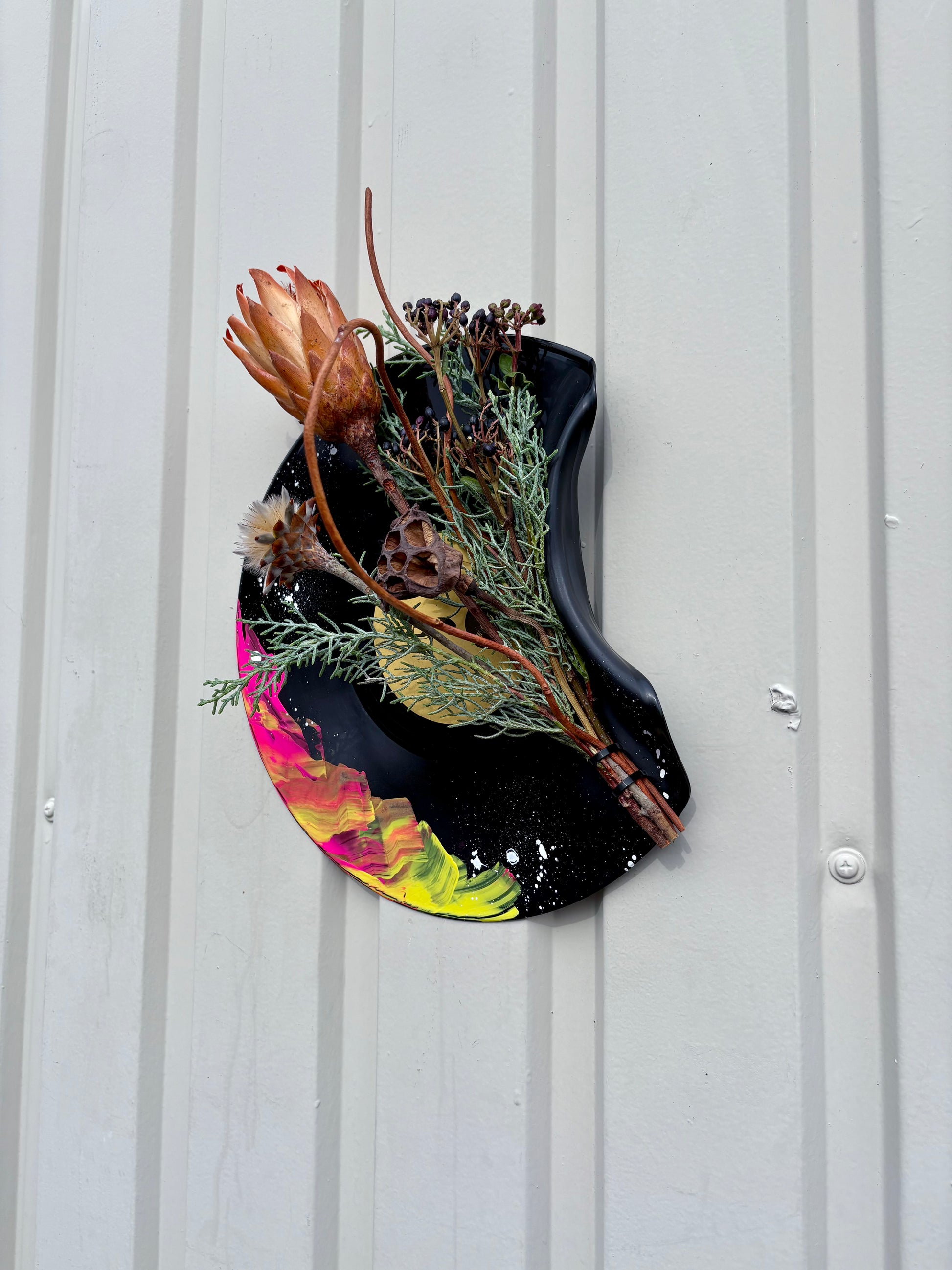 艶やかな黒とペイントと曲げたデザインが印象的。